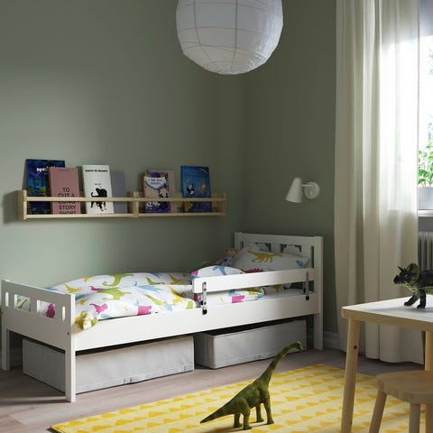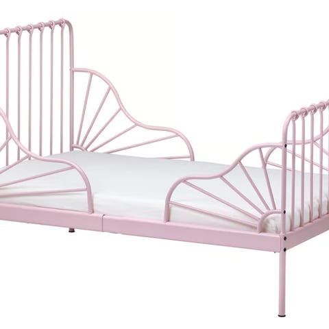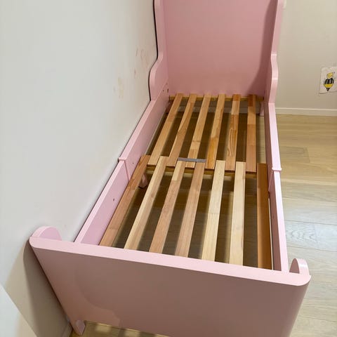 Pent brukt IKEA uttrekkbar seng for barn i rosa farge. Sengen har uttrekkbar funksjon som gir ekstra soveplass.