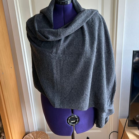 Lite brukt sjal i lammeull med flettemønster. Farge er lys beige, tror bilde nr 2 stemmer best. Ingen skader.