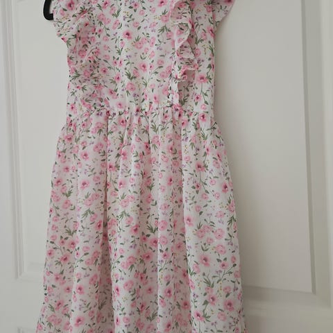 H&M kjole i størrelse 128 for jente. Kjolen er svart med et mønster av små prikker og er laget av polyester. Passer til barn i denne aldersgruppen og kan brukes til ulike anledninger.