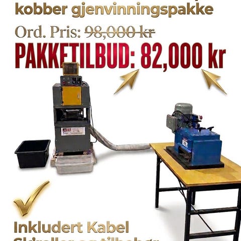 Selger En kabelgranulator som skiller kobber fra plast automatisk er en maskin laget for å resirkulere elektriske kabler ved å knuse dem og deretter separere kobber og plast gjennom et luftseparator-system.