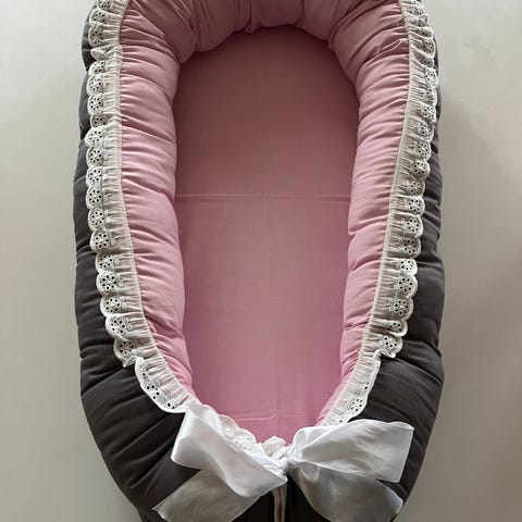 Flott og lite brukt babynest selges billig. Har ingen synlige feil eller slitasje. Trekket kan tas av for vask.
