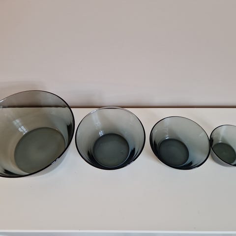 Dessertbolle designet av Willy Johansson på 80-tallet. Ingen skader. Vanskelig å få frem fargen på bildene, men er lilla-gråaktig. Ingen skader. Kan sendes eller hentes.