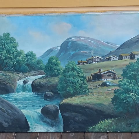 S. Hamnnes Landskap Oljemaleri 110x80 cm