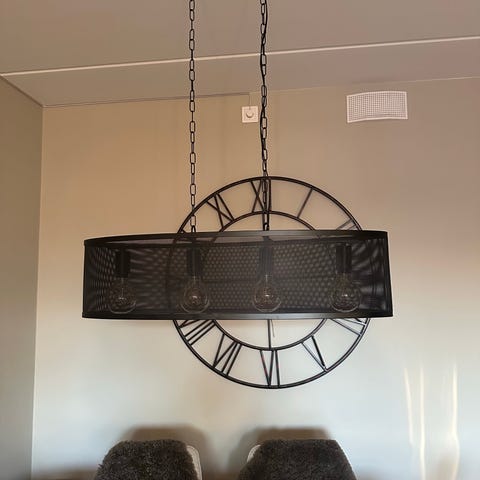 Selger min Philips taklampe (Denne lampen heter Philips 43992/31/16, ofte under kolleksjonen “InStyle”/“Ledino”. ) Lampen er laget av aluminium, veldig lite brukt og i god stand — fungerer som den skal. LED-løsning med 4 lys og lavt strømforbruk 4x7,5W gir varmt hvitt lys og er dimbar. Perfekt som takbelysning i stue, kjøkken eller spisestue (justerbar høyde). Lampen er enkel å montere. Ny pris var ca.8000kr. Selges fordi jeg bytter interiør.