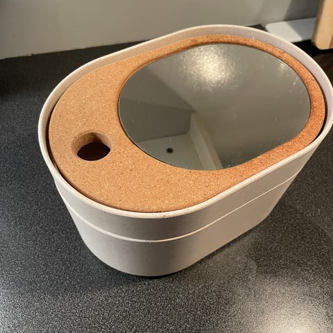 Vegghengt oppbevaringsboks i transparent materiale, fra BOXO. Nypris 249 kr.