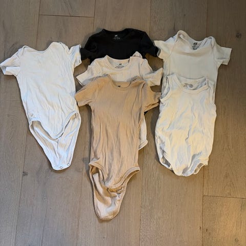 6 bodyer fra H&M i str 86. Flekker kan forekomme.