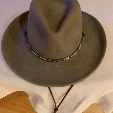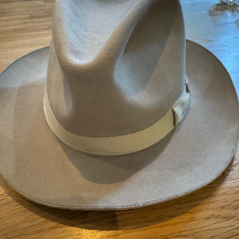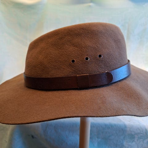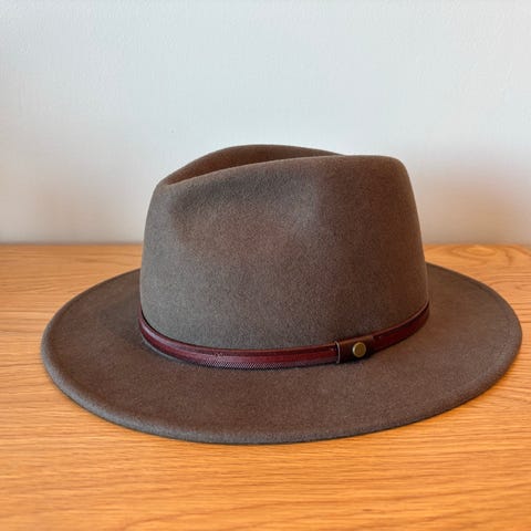 LACK OF of OLOR i lysebrun/kamelfarget fedora hatt i str 61(XL ) selges.
