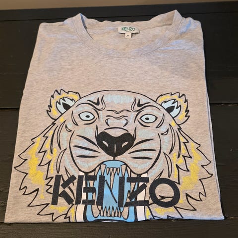 Kenzo T-skjorte i størrelse M for damer. T-skjorten er grå og laget av bomull. Den har et trykk med Kenzo-logo på fronten.
