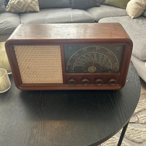 Gammel radio fra 1947. Fungerte utmerket føre den ble lagret for flere tiår siden.