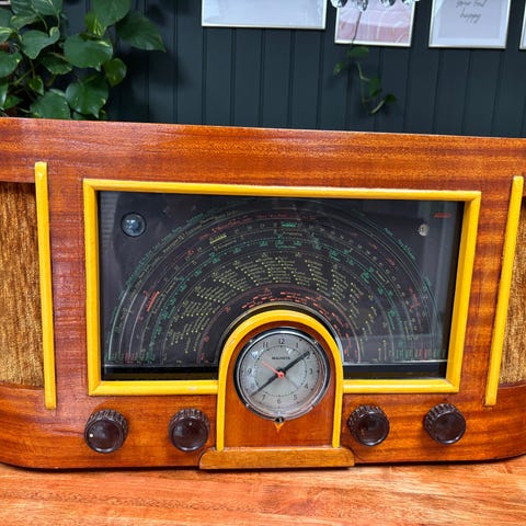 Testet den litt nå nylig og fikk den til å fungere og spille musikk via gramofon inngangen (som aux) . Er selvfølgelig ikke det råeste lyden da den nå nærmer seg 80 år gammel og kunne sikkert blitt gått over og blitt smørt opp knapper osv da det er noe skurring ved vridning.