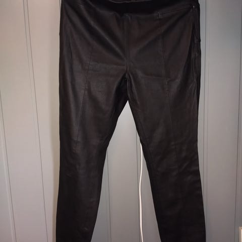 Lite brukt imitert skinn bukse Donna str 40 strikk i livet med glidelås i siden. Glidelås nede på hvert ben
