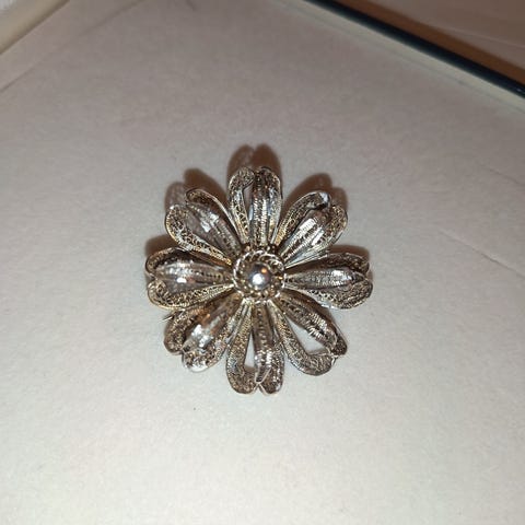 Brosje i massivt 835 sølv. Vakkert filigransarbeid.