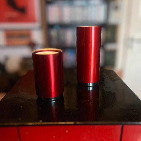 Selger 2 stk vintage/retro turkis emalje lysestaker fra Emalox, Norway. Lysestakene for smale lys, type juletrelys. Pent brukte, uten skader, noe slitasje grunnen alderen men ikke noe kritisk, fremdeles veldig blanke. Den ene manglerMade in Norway klistremerke.