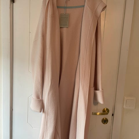 Helt nydelig kåpe fra Kashmina! Den er ikke brukt! Kan brukes inne og ute etter hva man ønsker. Mykeste plagget som finnes! Fargen er lys med en liten touch av rosa. Str M Ny pris er 7000,- selges kr 4500,- fin julegave. Jeg kan sende bilder av min om ønskelig. Selges fortsatt i butikk så jeg går ikke lavere. Kan hentes hos meg, prøves eller sendes mot at kjøper betaler porto