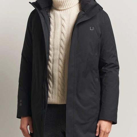 Ubr Jakke i størrelse M, farge svart, laget av dun. Jakken er designet for menn og egner seg til utendørs bruk.
