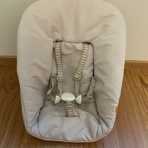 Stokke tripp trapp newborn det med sikkerhetssele. Kjøpt juni 2025, brukt lite og kun i kort tid.