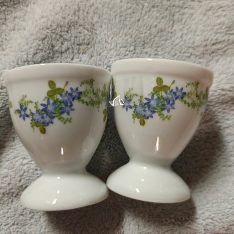 4 stk Blåveis eggeglass fra Porsgrund. Ubrukte, ligger i orginaleske. Selges samlet for 200kr. Må hentes I Skotselv. Sender ikke