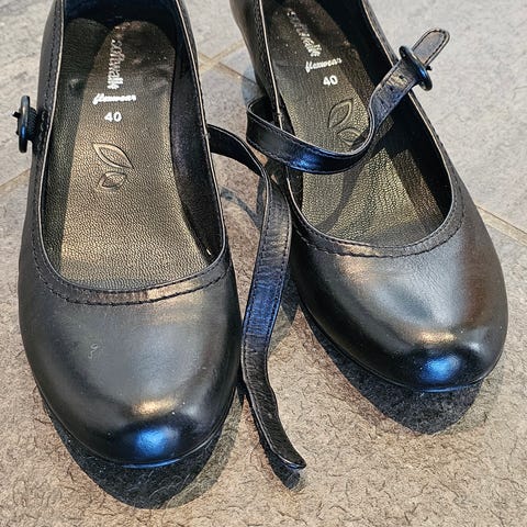 Pene, omtrent ubrukte lærekontrakt av god kvalitet. Litt stor i str, så jeg vil si den er mellom 38 og 39. Glatt såle, og egner seg godt som dansesko.
