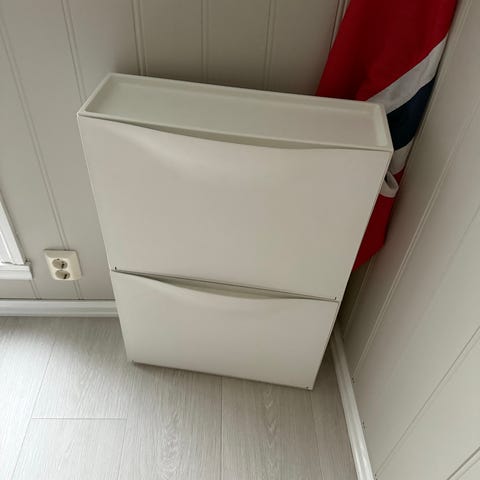 4 er solgt, gjenstår 4. Selger 8 stk Trones skoskap fra IKEA i hvit. 75 kr per stk. Pent brukt, ingen merker på utsiden.