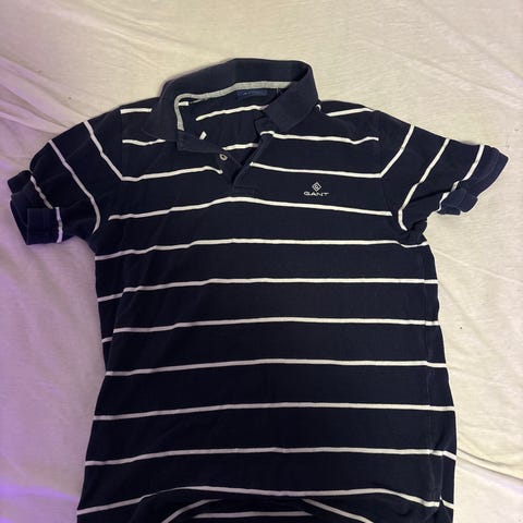 GANT Polo skjorte i blå farge, størrelse S, laget av bomull. Slim fit. Str S vil jeg si tilsvarer ungdom, ca 170 høyde. Kort arm.