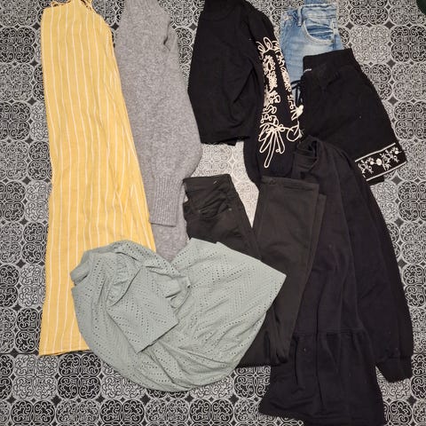 Stor klespakke i str S selges. Noe brukt og noe ubrukt. Flere kjente merker som Nelly, Ginatricot og bubblerom. Pakken består av: