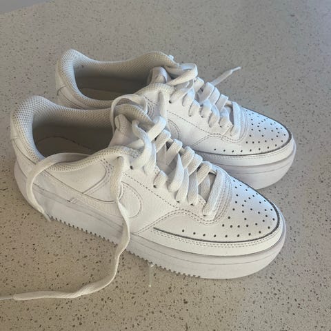 Nike Sneakers joggesko i størrelse 37,5 for dame. Skoene er hvite og laget i skinnmateriale. Passer til daglig bruk og lett trening.