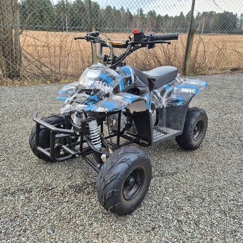 Jentungen kjøpte seg en liten 2takt, 49cc atv i sommer. Denne prøvde vi en gang men hun synes den bråkte for mye så hun vil heller selge denne og kjøpe seg en elektrisk utv, sånn at hun også kan ha med en venn.