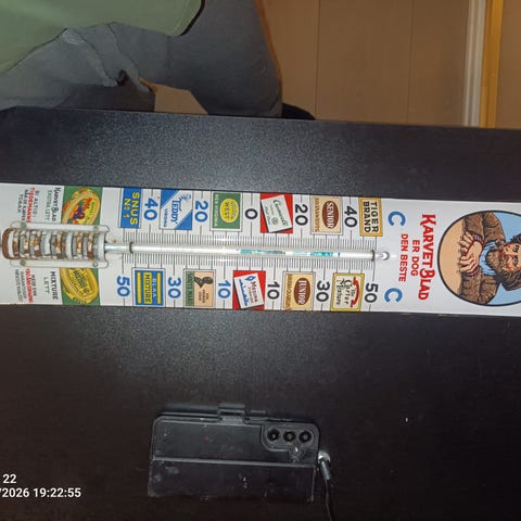 Termometer i glass fra Galileo Galilei. Glasskuler med farget glass som flyter opp og ned og viser hvor mange grader.