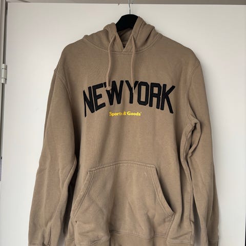 H&M Varsity genser i størrelse S for menn. Genseren er laget av bomull og har hvit farge. Den har hette og frontlomme, med trykkdetaljer på fremsiden.