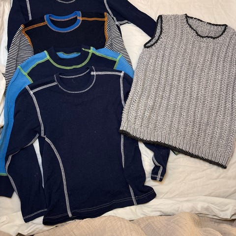 To gensere fra Hummel hvor hettegenser i str 104 (liten i str) er nesten ikke brukt, den andre er i str 98. To gensere fra gullkorn (str 104-110, obs! Noen merker på erme), lite brukt genser fra Ellesse (str 98), gul pikachu genser fra HM (str 98-104) brukt to ganger, Disney genser fra Sinsay (str 98), to grå gensere fra HM (str 98), den med pikett er brukt to ganger og en helt ny blå fleece genser fra HM (str 98/104).