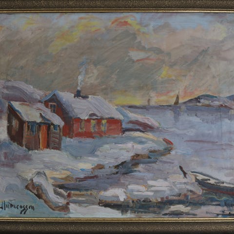 Nydelig rolig vinterlandskaps bilde. Maleriet er signert av kunstneren N. Noran, født i 1905 i Wien, Østerrike. Lerretet har nummer 5023 på baksiden, dette betyr mest sannsynlig at bilde har vært gjennom et atelier/ galleri. Kunstneren var aktiv i Wien og senere i Sveits. Maleriet har hengt på veggen hos mine foreldre, nå er det hos meg. Mål på rammen er 107 x78 cm. Selve maleriet er 90x 60 cm. Jeg selger malerier for kr 2000,-Må hentes i Arendal. Kan eventuelt avtale å levere mellom Arendal og Telemark også.