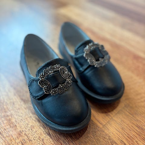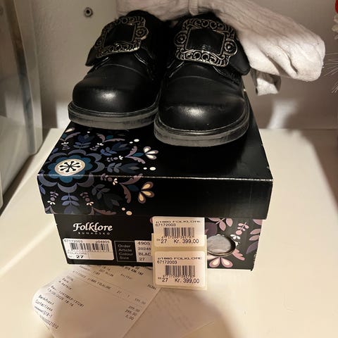 Helt nye bunadssko til gutt eller jente fra Bunad i str. 27. Praktisk borrelås for åpning/lukking. Ileggssåle følger med.
