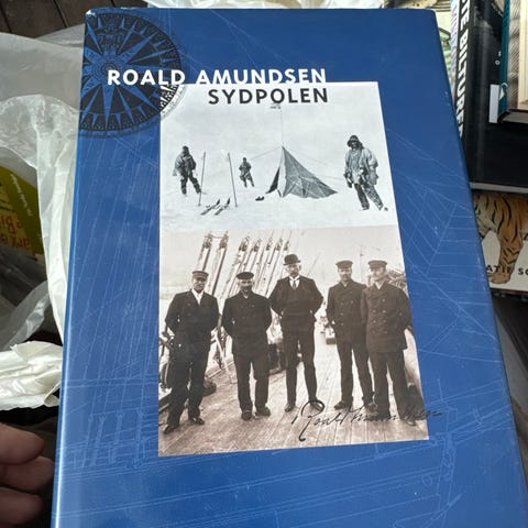 Roald Amundsen Sydpolen bok som dokumenterer Amundsens ekspedisjon til Sydpolen. Inneholder historiske beskrivelser og bilder fra reisen, inkludert utfordringer og opplevelser underveis. Passer for lesere interessert i polarhistorie og oppdagelsesreiser.