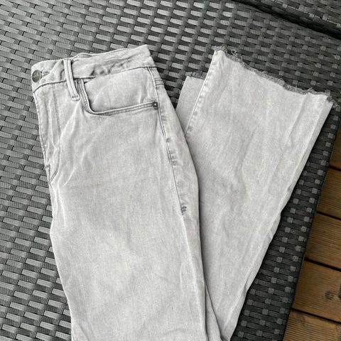 Lys jeans med høyt liv selges da den blir lite brukt. Kul bukse med frynser nederst på bena