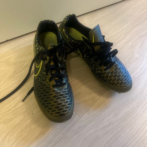 Nike fotballsko i svart og hvit farge str 32. Skoene har knotter under sålen for bedre grep på kunstgress eller grusbaner. Egnet for bruk ved fotballspill.
