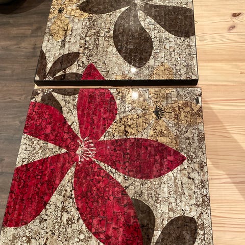 Selges samlet. Rammene følger med, men disse har ikke oppheng. Har stått på hylle. Målene på postere er 30 cm x 40cm.