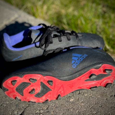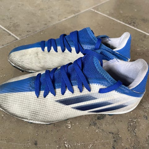 Adidas F50 fotballsko i gull og svart farge. Skoene har knotter under sålen for bruk på gress og kunstgress. Designet for fotballspillere som ønsker sko med god grep og kontroll.