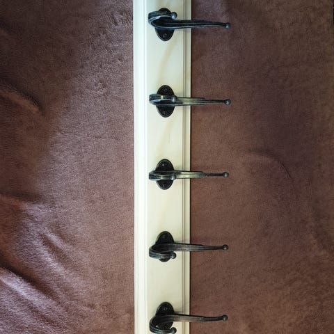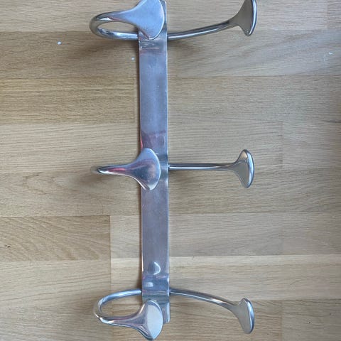 Selger en svart tre-knaggrekke med tre solide kroker. Den er helt ny, aldri brukt og har fortsatt etiketten på.