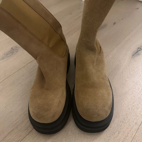 Nude of Scandinavia Hæler i størrelse 39. Støvlettene er laget av kvalitetskinn og har en blåfarge. De har en spiss tupp og en middels høy hæl. Egnet for formelle og uformelle anledninger. Rieker skinn skoletter med ull for. Kun brukt et par ganger.