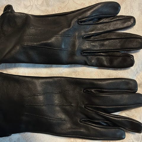 Mulberry skinnhansker i størrelse M for dame. Hanskene er svarte og laget av skinnmateriale. Nypris 1