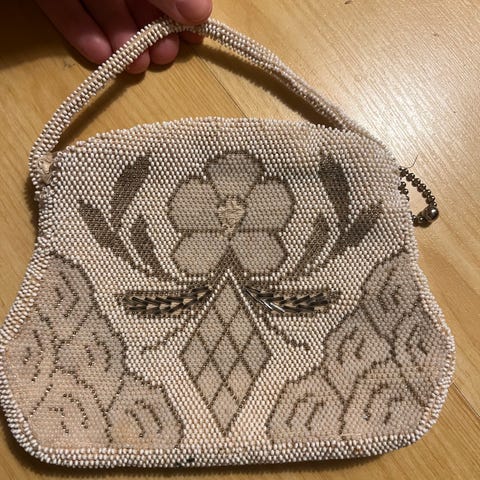 Clutchen er ren og pen innvendig, men det har vært limt på en liten merkelapp inni. Limet er igjen, men der kan man jo bare sette over en navnelapp etc.