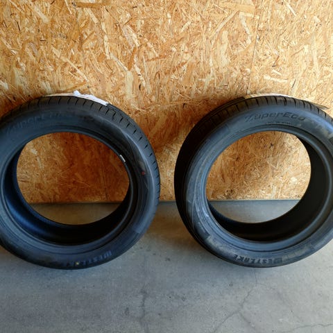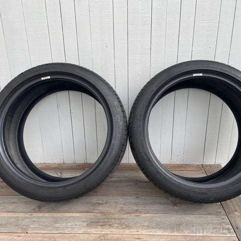 Selges da jeg var uheldig og de to andre dekke hadde punktert ved dekkbytte nå i høst. Disse lot seg ikke lappe og jeg kjøpte da 4 nye dekk i 285 bredde som passer bedre på min bil.