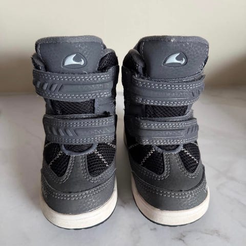 Selges Viking vintersko i størrelse 24. Skoene er grå og har borrelåslukking for enkel tilpasning.