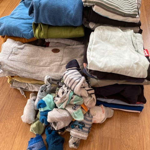 9 bodyer, 8 bukser, 10 heldragter, 20 sokker. Alle brukt av ett barn, ingen hull eller flekker.
