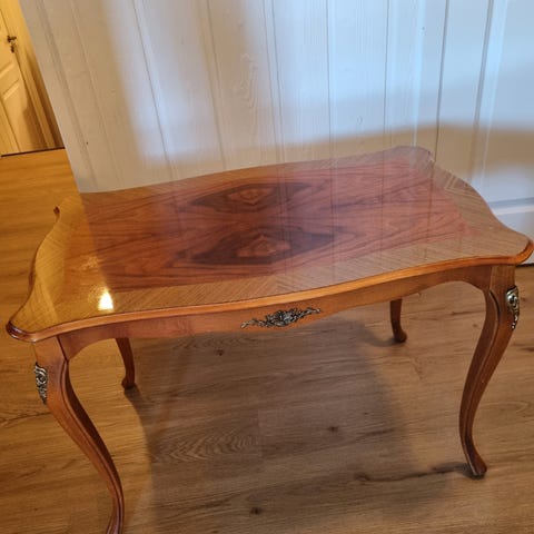 Selger et elegant og velbevart bord i lutet furu videre. To små merker i øverste bordplate, ellers fin.