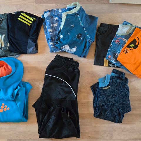 Svart hettegenser og bukse sett for barn i størrelse 128. Passer for både gutter og jenter. Materiale ikke spesifisert.
