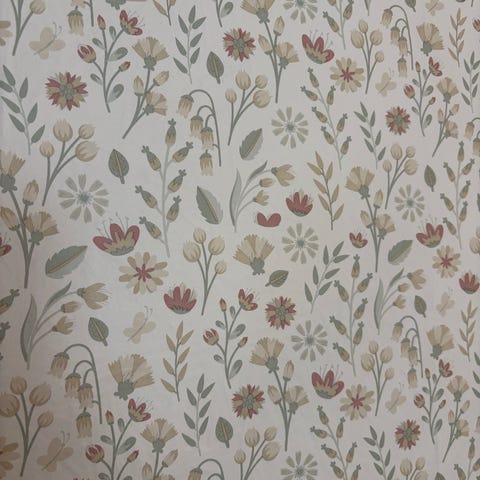 Fem uåpnede ruller Living Flora tapet fra Rusta. Mønstret består av ulike blomster i assorterte farger.