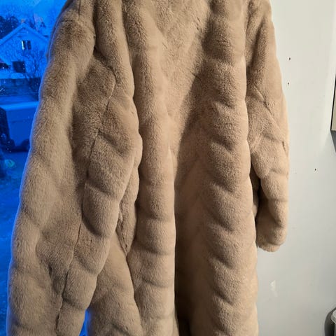 H&M Annet yttertøy i beige fuskepels, størrelse M for dame. Den er stor i str..Materialet er kunstig pels, som gir varme og komfort.
