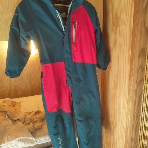 Isbjørn of sweden dress, de beste dressene når det kommer til varme og vanntetthet. Vi har vært superfornøyd. Store i str så holder to sesonger. Viktig æ impregnere jevnlig for best funksjon. Dressen kostet 2000 ny. Dressen har bruksmerker og er litt mattere i fargen noen steder, har noen overflaterisp og skrap, men ikke noen som påvirker bruken mye tror jeg. ene glidlås foran funker ikke. Mener det er masse bruk igjen på denne. Den kan også forlenges i ermer og ben. Kan sendes