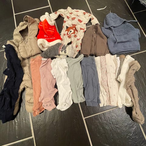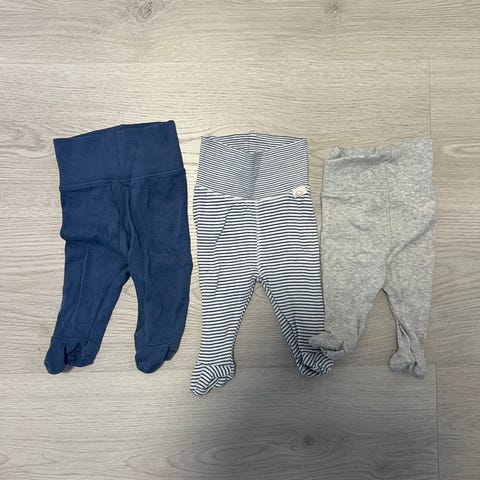 2 strømpebukser (92% ull) i størrelse 50. Det står ikke størrelse i de hvite, men den er ganske lik i lengden som den blå.